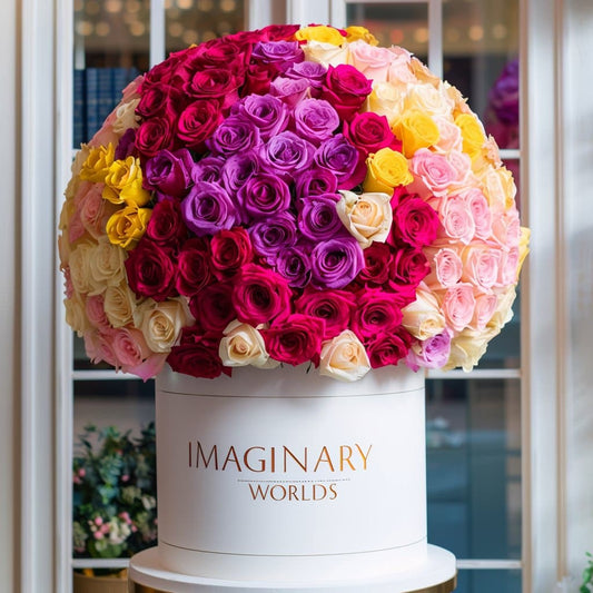 Celebrate life’s vibrant moments with our multicolored Ramo Buchón collection. This dazzling arrangement features preserved roses in a variety of hues that last up to 3 years, making it the ultimate bouquet for bold statements and unforgettable moments.