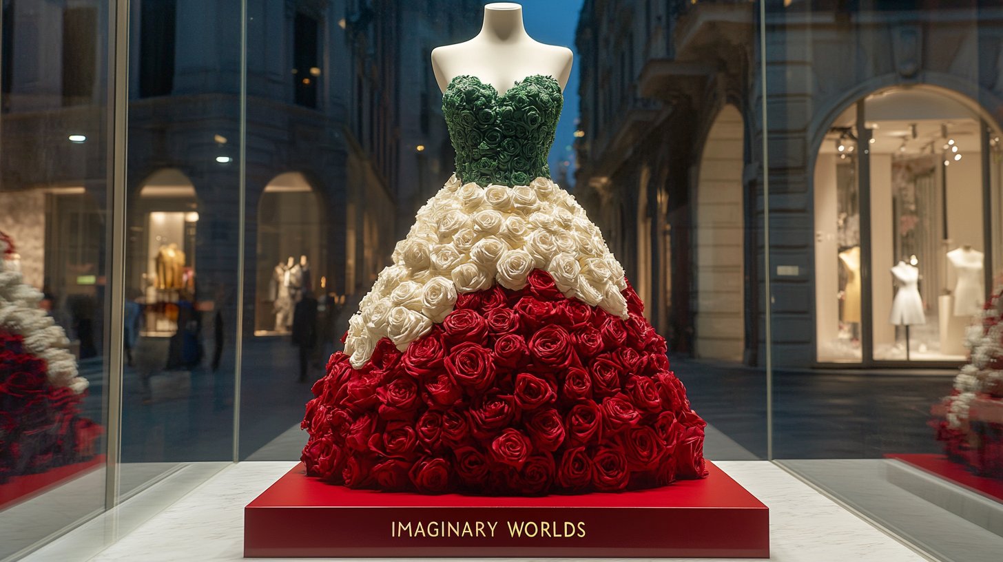 Imaginary Worlds projected its Rose Dress — a sculpture made of preserved roses — onto the iconic Leicester Square screen in May 2025. This public display was a declaration of symbolic artistry: emotional, enduring, and unapologetically grand. For admirers of design and fashion in Italy, it affirmed that floral expression belongs in the realm of collectible art.