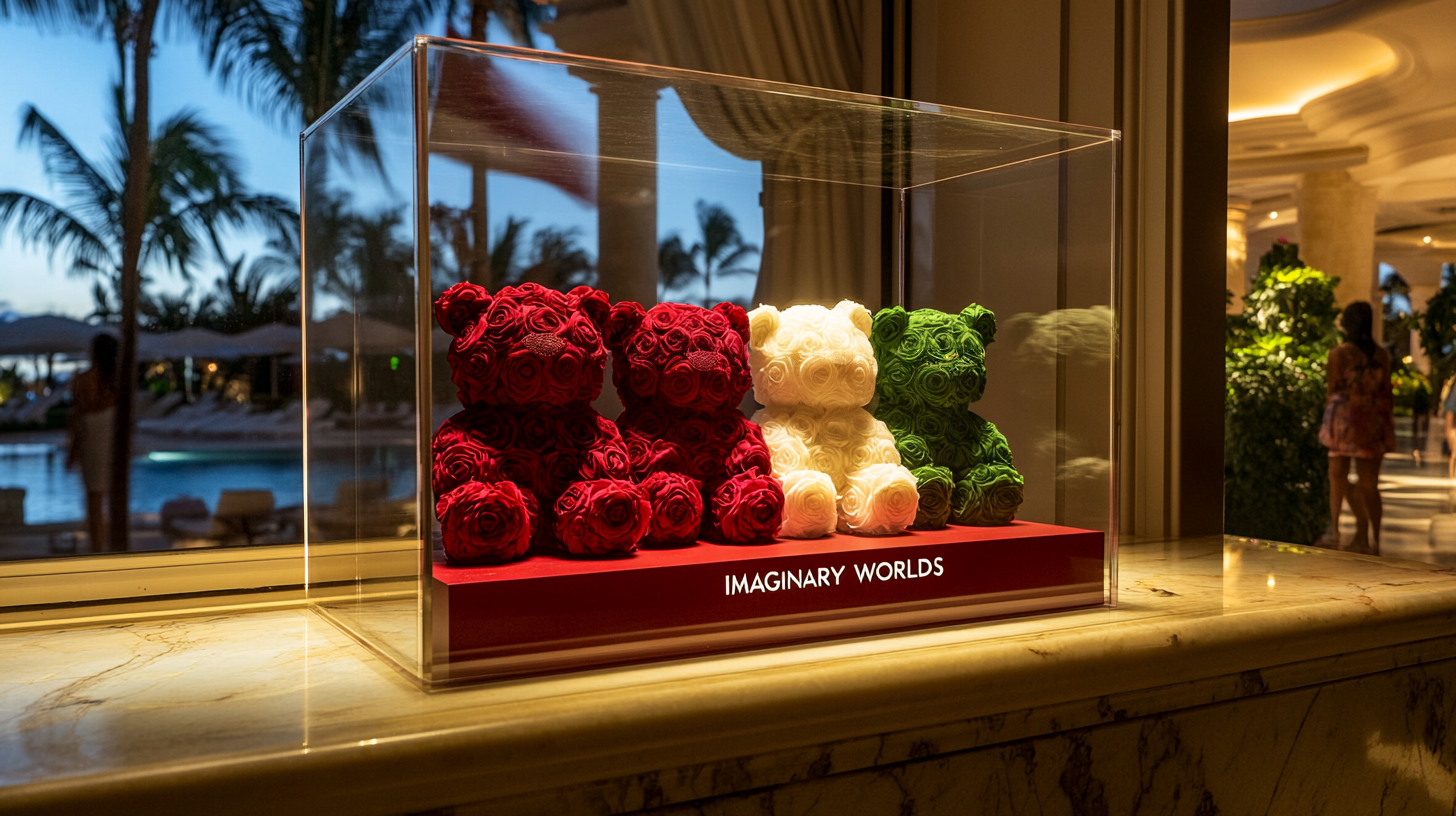 Imaginary Worlds proudly showcased our Rose Bear Set on a grand digital screen in the heart of Times Square, New York — one of the world’s most iconic advertising stages. This global debut marked a powerful moment for our brand, reaffirming our vision to bring preserved floral artistry to audiences around the world. The Rose Bear Set embodies timeless emotion, luxurious craftsmanship, and a new era of meaningful gifting.