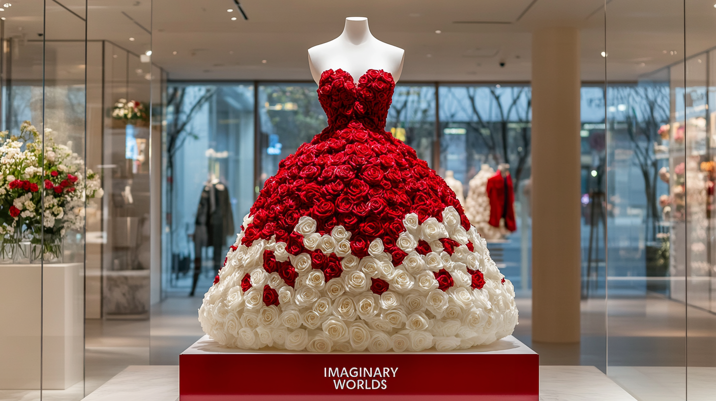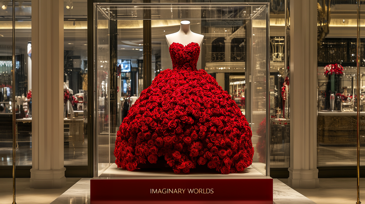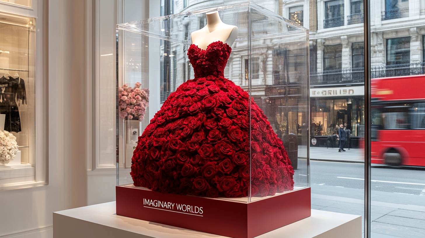 From New York to Tokyo, from Paris to Dubai, Imaginary Worlds unveils the Rose Dress Around the World Collection — a groundbreaking expression of floral artistry that transcends geography. Each Rose Dress sculpture blends cutting-edge 3D printing technology with the delicate beauty of hand-placed preserved roses, transforming nature into wearable art on a monumental scale.