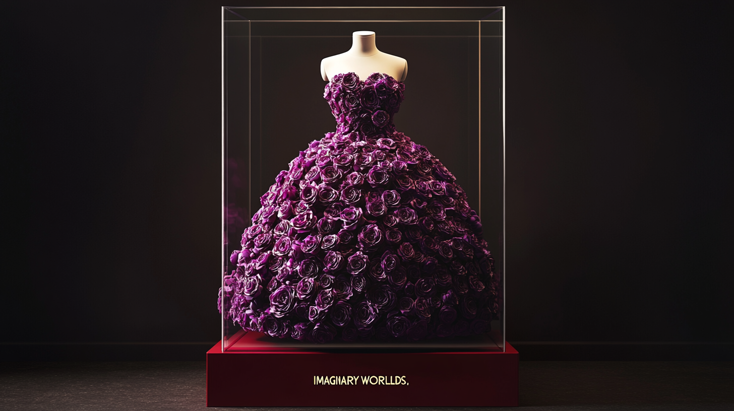 The Rose Dress is a patented sculpture crafted with a combination of 3D printing technology and preserved roses. It is an exclusive innovation by Imaginary Worlds, redefining what is possible in floral artistry.