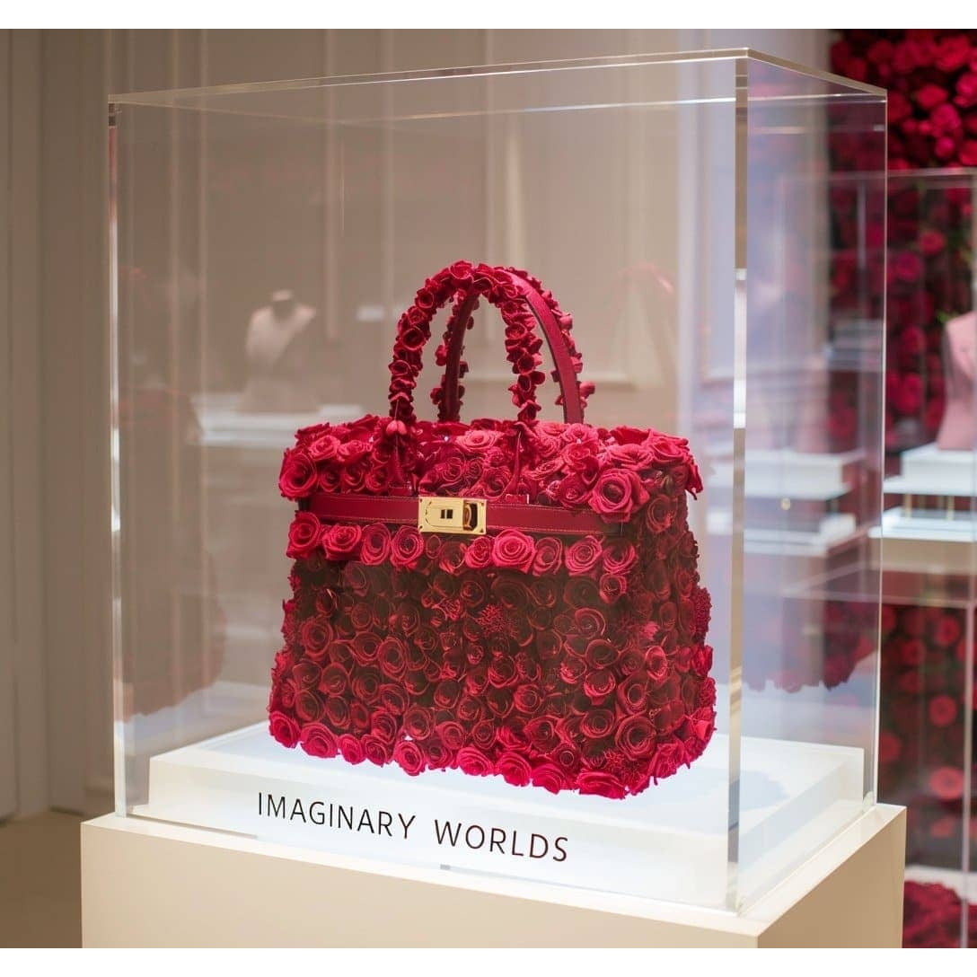 Housed in a sleek acrylic display case with dimensions of 35 cm x 25 cm x 34 cm (13.8 in x 9.8 in x 13.4 in), the Eternal Bloom Red Rose Bag stands as a testament to both beauty and craftsmanship. Whether as a gift for a loved one or as a self-purchase to enrich one's collection of unique items, it promises to capture hearts and enhance any space it inhabits.