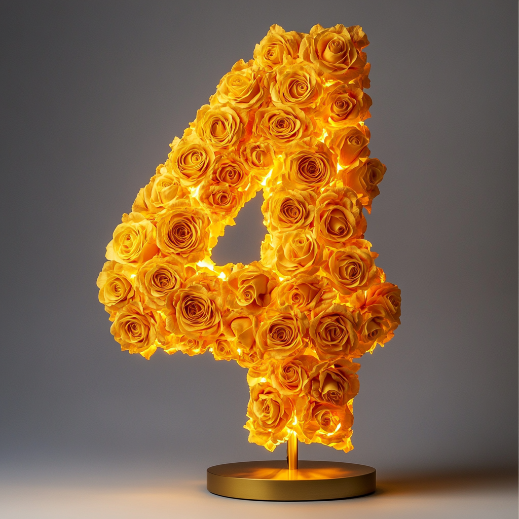 The Number Lamp features real preserved roses, meticulously arranged to complement each numeric shape. Expert artisans carefully select roses for fullness, color consistency, and soft-touch preservation. Each number requires precise floral placement, ensuring even coverage, seamless integration with LED lighting, and a sculpted, luxurious design. This handcrafted process makes every lamp a unique floral masterpiece.